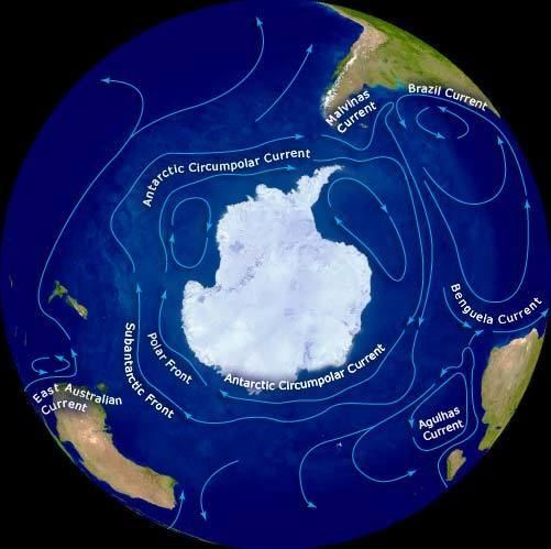 The Antarctic Circumpolar Current (ACC) is the largest ocean current in the globe. It starts from the Antarctic and flows eastward towards south Atlantic, Indian and Pacific Oceans. The ACC is a relatively slow current but transports greater amounts of water than any other current. As the deep and cold water travels through warmer climates, it mixes with warmer water. As the cold water sinks below, the warm water rises creating a slow upwelling bringing nutrients to the surface as mentioned before. Westerly winds are very strong in the Antarctic which drive the eastward flow of the ACC. Due to this, the ACC is historically referred to as the ‘West Wind Drift’.