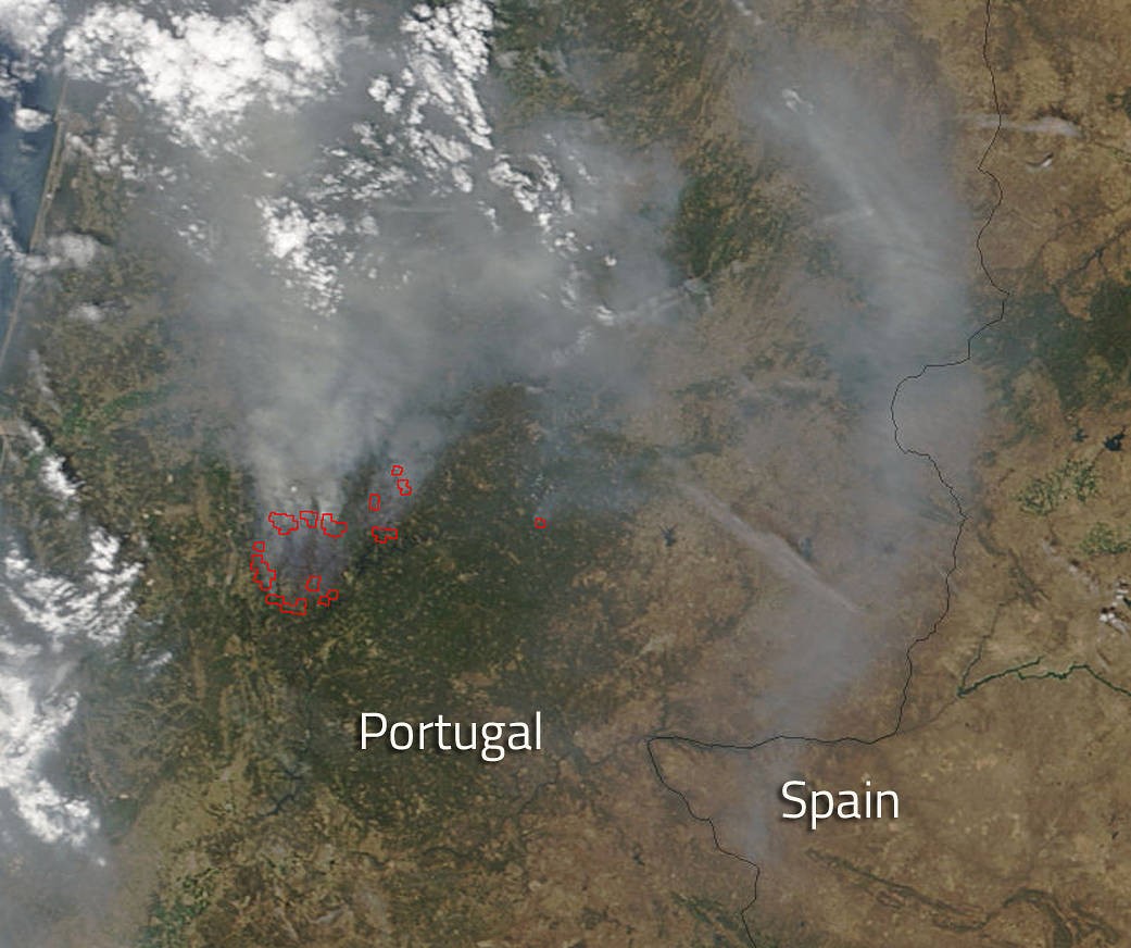 The satellite image above shows the smoke of the massive fire spreading into Spain as well.